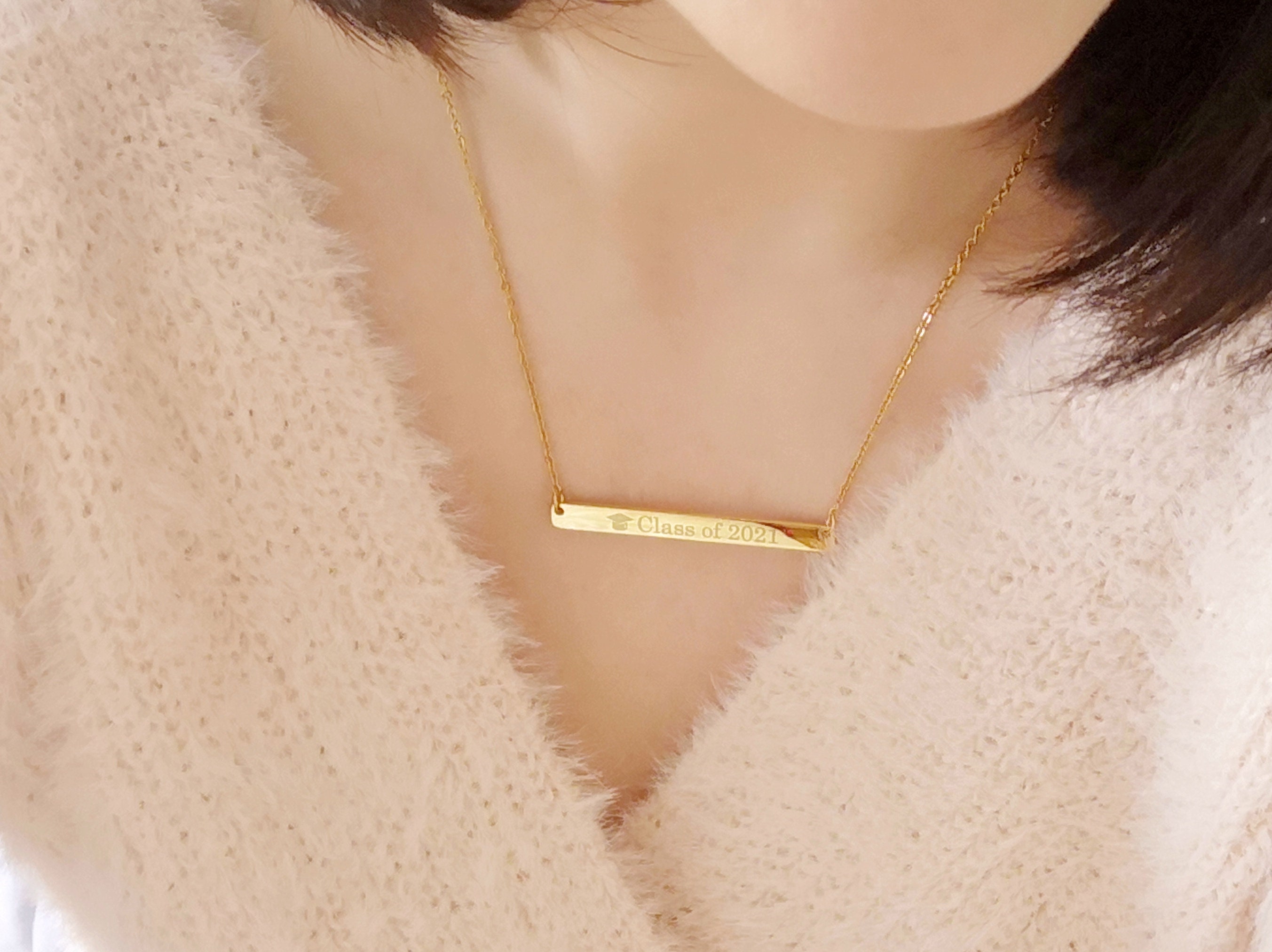 . Custom Bar Necklace Custom bar necklaces are a modern delicate and minimalist jewelry trend that are not going away any time soon. Our custom bar necklace comes with an adjustable chain but we sell longer chains as well simply search necklace chain. Halloween Sale 10 OFF orders 5900CODEN4.